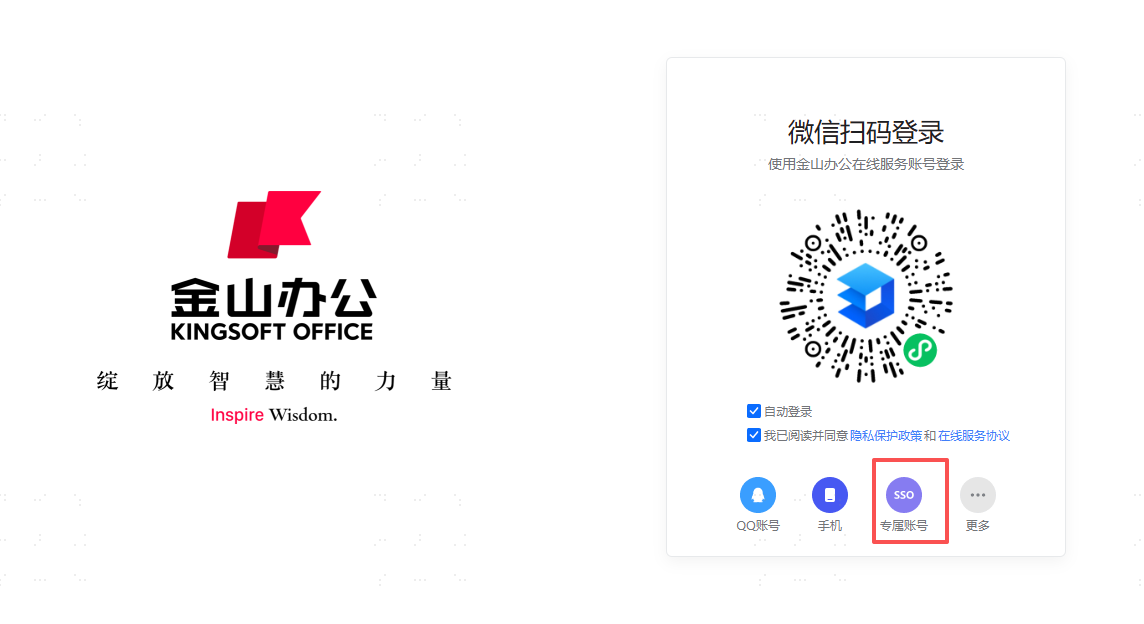 web端登录WPS个人中心 (opens new window),选择专属账号SSO。