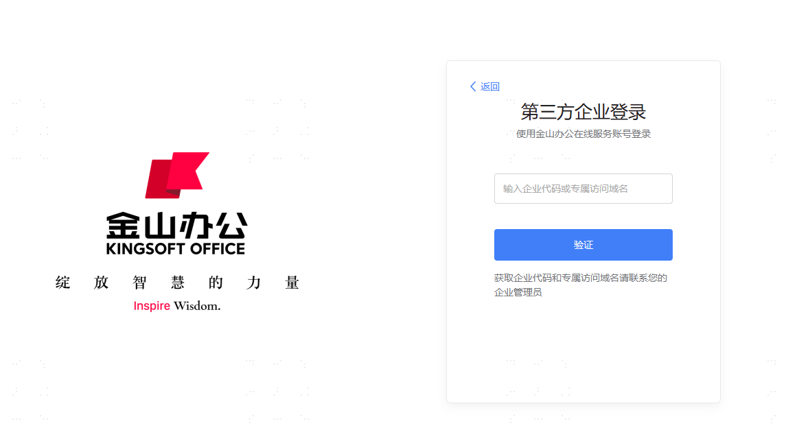 输入企业代码,跳转至IDaaS登录页,输入授权用户凭证,进入金山文档。